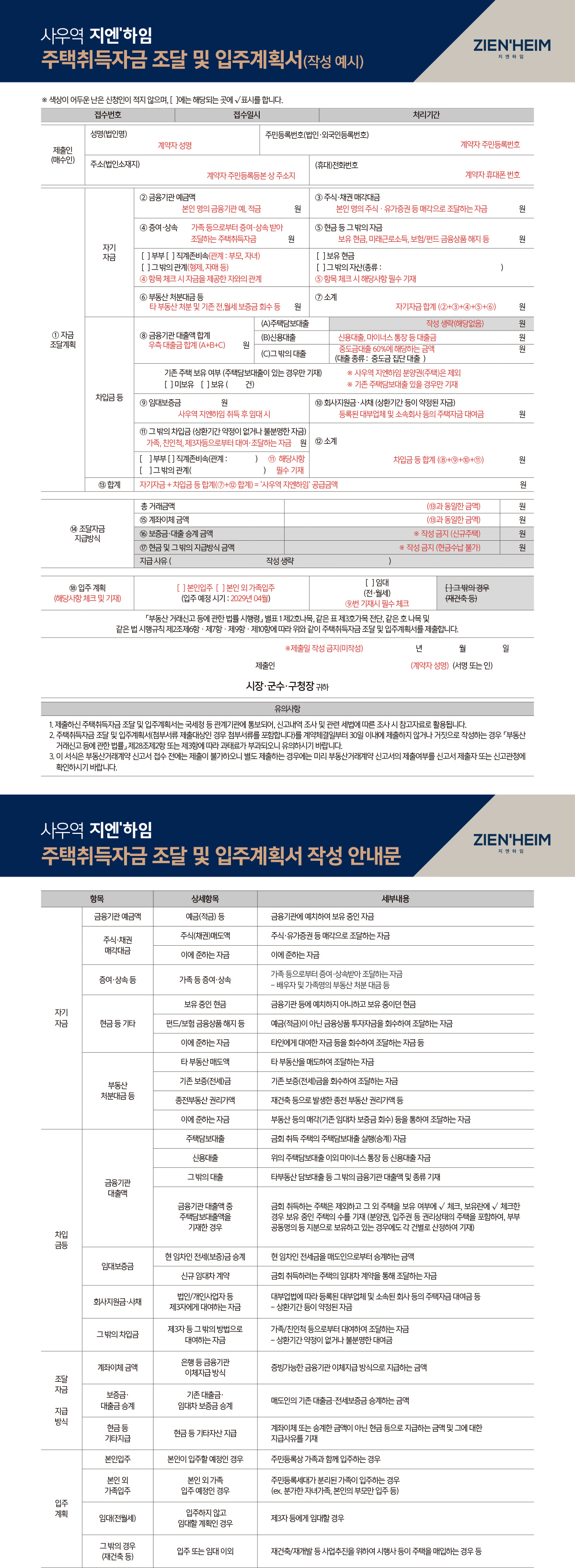 주택취득자금 조달 및 입주계획서
